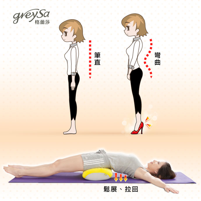 1、腰椎受損:人類的脊柱有頸曲、胸曲、 腰曲和骶曲4個生理彎曲,正常的生理彎曲依靠椎體、椎間盤、小關節、韌帶和肌肉等多重結構共同維繫,起到平衡、穩定和緩衝震盪等 重要生理作用。任何原因導致脊柱整體失衡,都會引起腰部的病痛。穿上高跟鞋後, 骨盆會向前傾,重力線前移。為了維持穩定,勢必採取挺胸、翹臀和 腰向後伸等姿勢重新建立平衡,維持過度而持續的腰椎後伸,使腰肌長期處於緊張收縮的狀態而出現腰肌勞損。