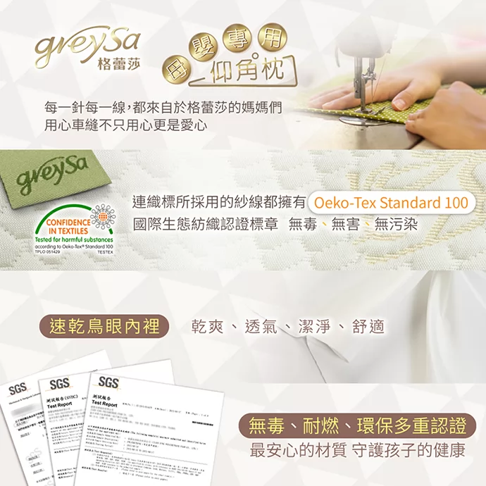 GreySa格蕾莎【母嬰專用仰角枕】通過各項檢測可安心使用