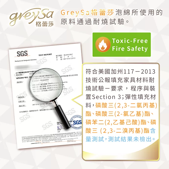 GreySa格蕾莎所使用的泡綿通過耐燒試驗