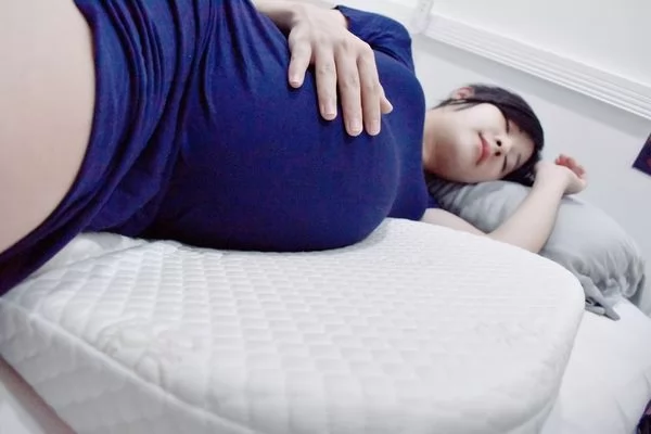 懷孕中後期基本上都只能側睡,有仰角枕輔助放在腹部側邊可以減輕肚子壓迫的不舒服感覺,就不會一直有垂吊的不舒服感覺,肚子裡的寶寶也能睡得安穩