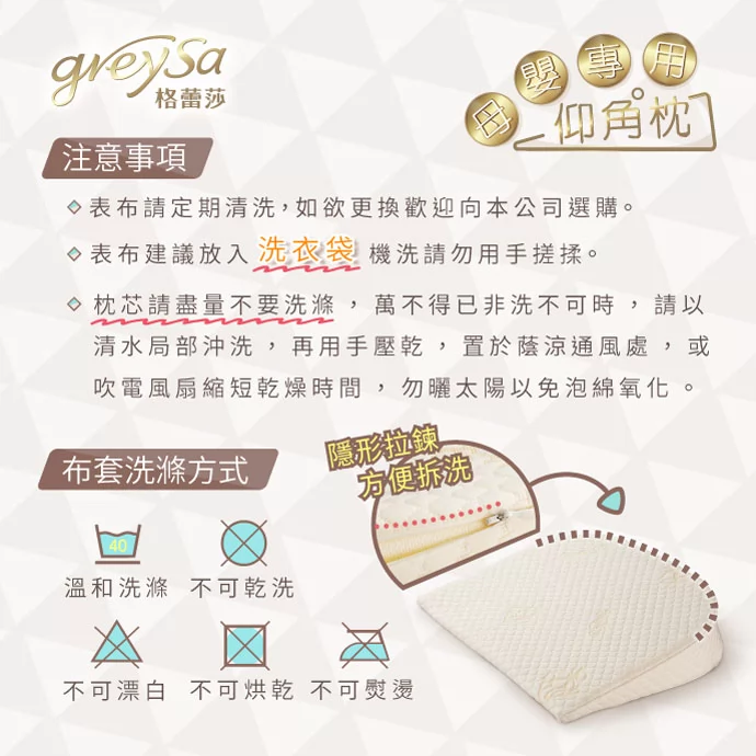 GreySa格蕾莎母嬰專用仰角枕保養注意事項: