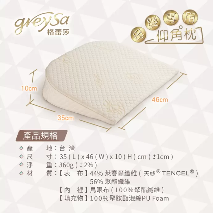 GreySa格蕾莎母嬰專用仰角枕產品規格: