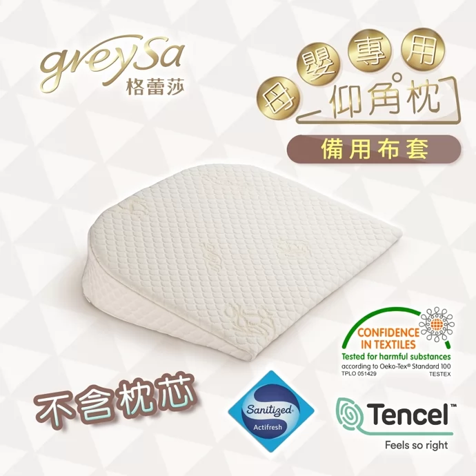 GreySa格蕾莎母嬰專用仰角枕的枕頭套,採用國際品牌TENCEL®天絲纖維材質,並使用瑞士第一品牌Sanitized®的防菌技術,讓您更舒適、清新、安心地享受優質的育嬰生活。
