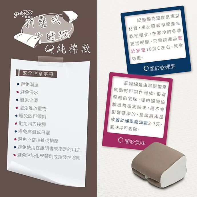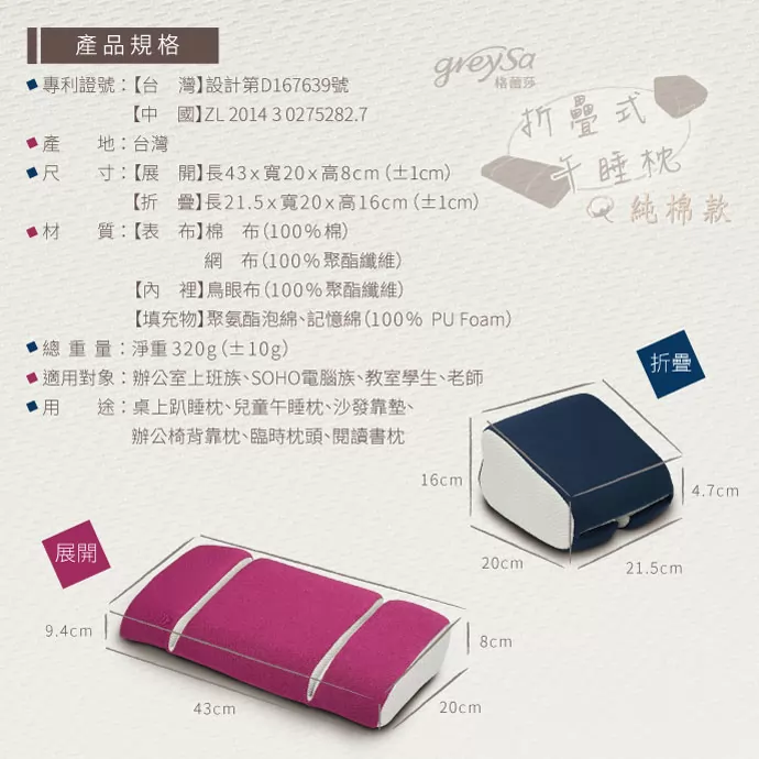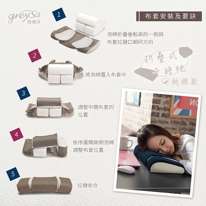 GreySa格蕾莎折疊式午睡枕純棉款適用對象:有午睡習慣的上班族、SOHO族、學生、孕婦等