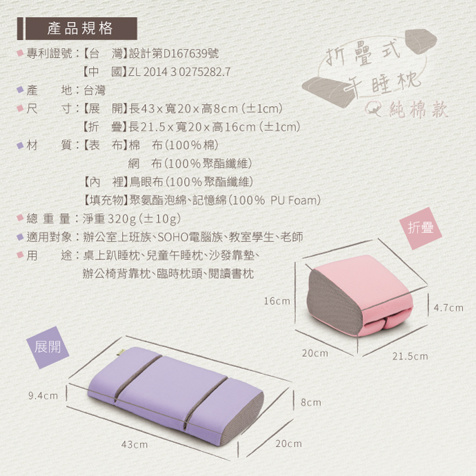 GreySa格蕾莎折疊式午睡枕純棉款適用對象:有午睡習慣的上班族、SOHO族、學生、孕婦等