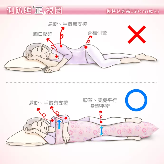 側趴睡正視圖-模特兒身高160cm (成人)