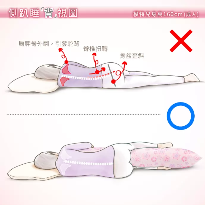 側趴睡背視圖-模特兒身高160cm (成人)