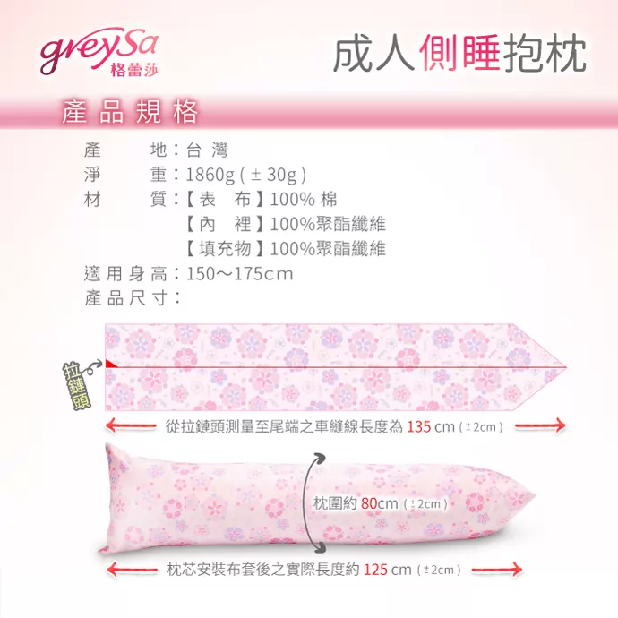 GreySa格蕾莎成人側睡抱枕產品規格: