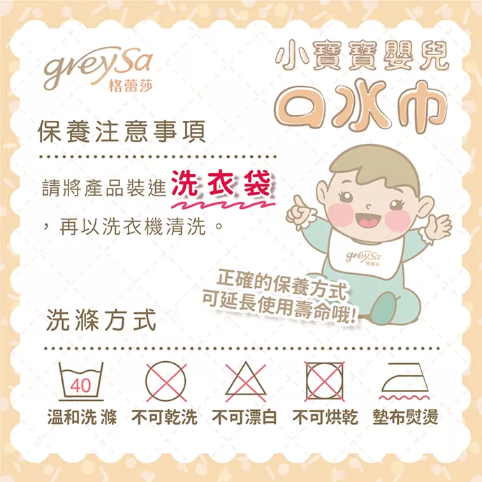 GreySa格蕾莎小寶寶嬰兒口水巾保養注意事項