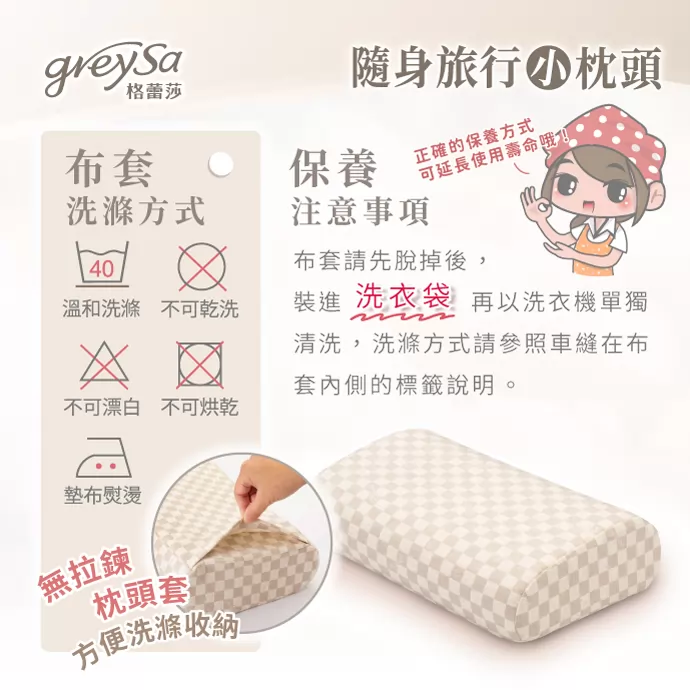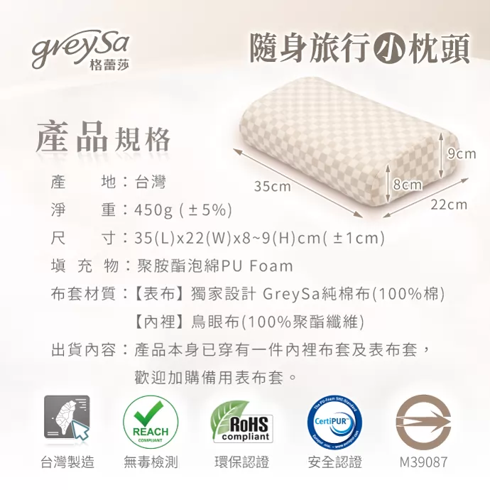 GreySa格蕾莎隨身旅行小枕頭貼心附上防塵套