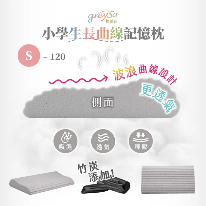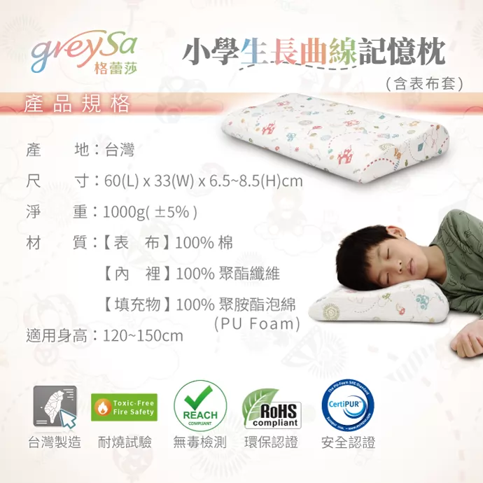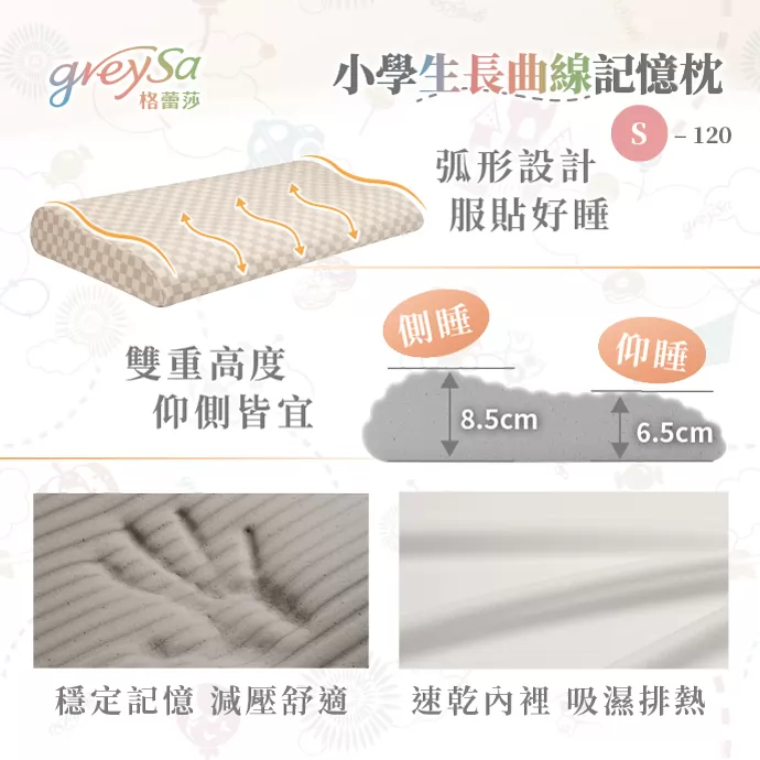 GreySa格蕾莎【小學生長曲線記憶枕S-120】120cm以上兒童適用的枕頭