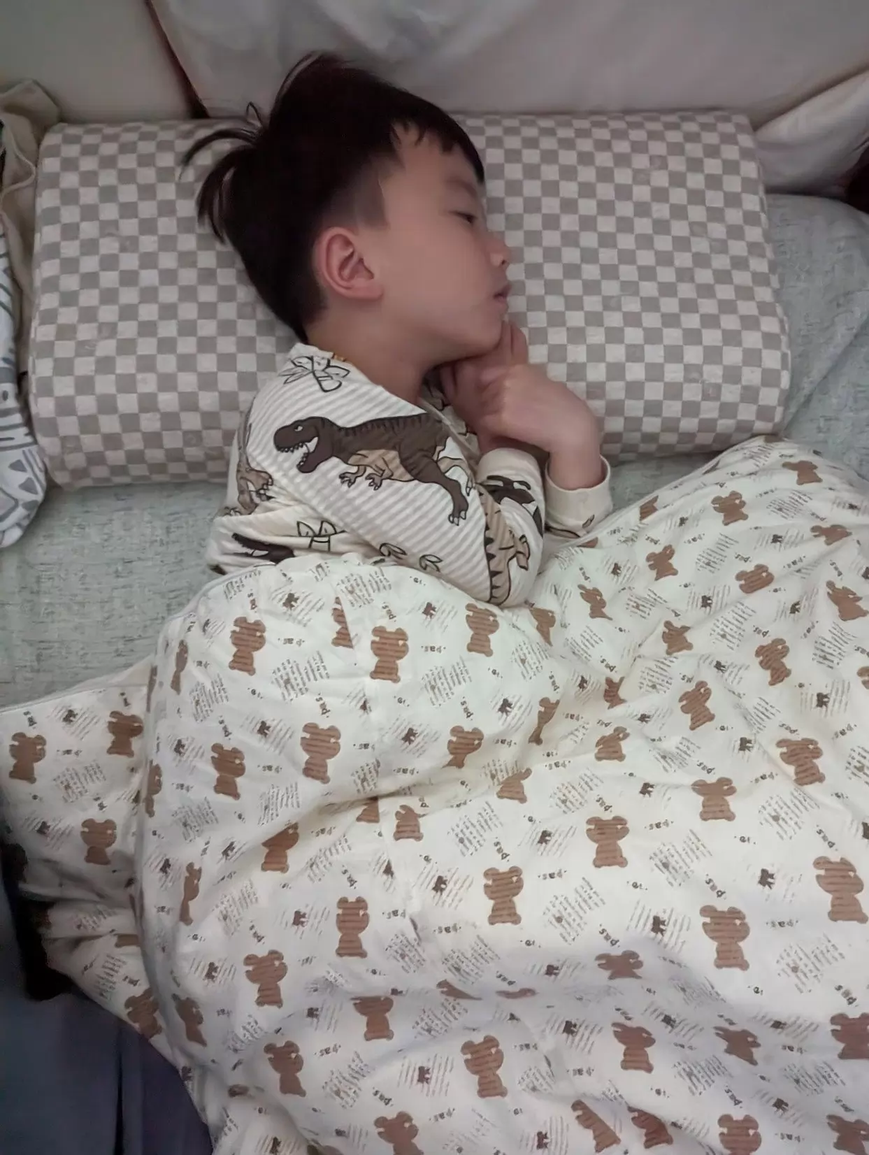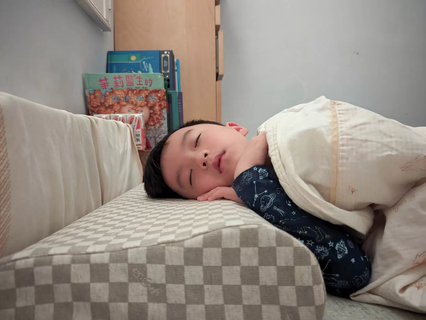 誠哥誠弟兩兄弟在兩歲前其實我不太給枕頭,畢竟他們睡相很差,都會睡到世界旋轉的。隨著誠哥長大來到了大班,夜晚的睡眠已經相當穩定,加上他喜歡側睡,所以有給他一個比較扁的枕頭。不過當媽的總是焦慮孩子的生長發育,怕使用過高或過低的枕頭會影響他的生長發育,所以最近換了GreySa格蕾莎–小學生長曲線記憶枕。