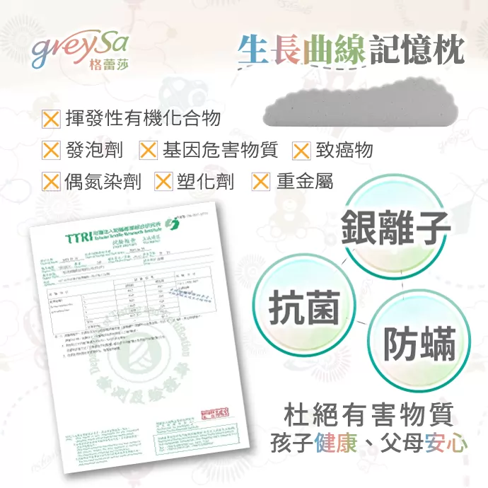 GreySa格蕾莎所使用的泡綿原料通過歐盟環保RoHS認證、歐盟REACH法規151項檢測
