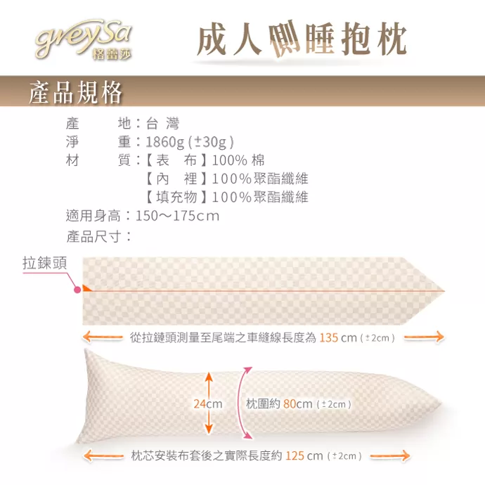 GreySa格蕾莎成人側睡抱枕產品規格: