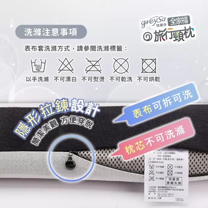 泡綿不可洗滌 表布套洗滌方式,請參閱洗滌標籤: