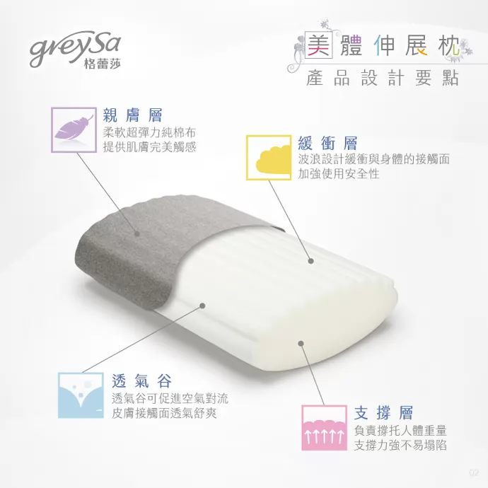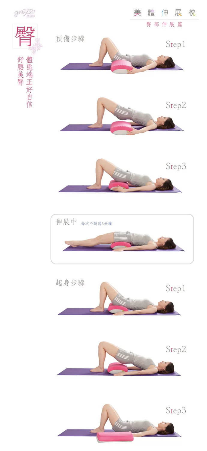 現代人士工作繁忙壓力大,身體容易疲勞緊繃,依人體需求設計而成的GreySa格蕾莎美體伸展枕,可輔助身體各個需要伸展(拉筋)的部位。