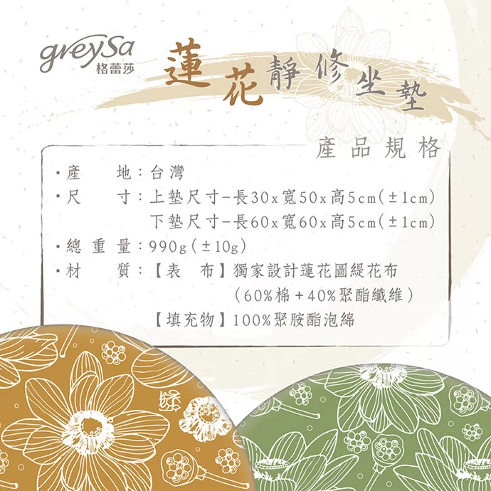GreySa格蕾莎蓮花靜修坐墊組產品規格: