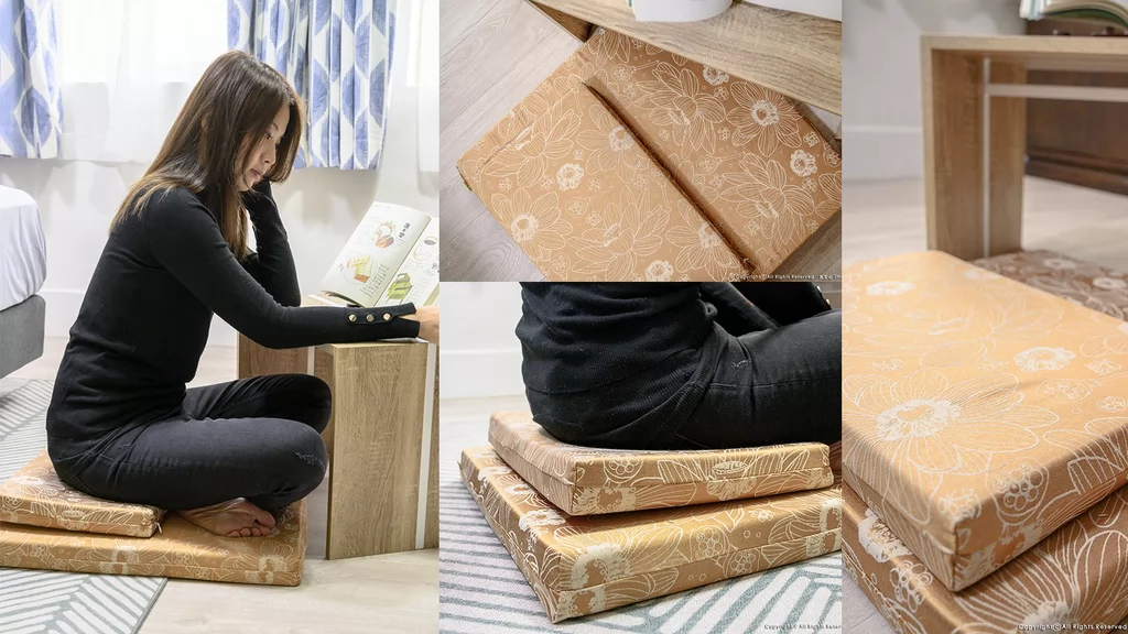 我雖然沒有靜坐的習慣,但會長時間看書,我試著以盤腿的姿勢坐在「蓮花靜修坐墊組」上。以前盤腿坐在地板上,下肢關節會摩擦到地板,總感覺不太舒服,但坐在柔軟有彈性的坐墊上,覺得很輕鬆舒適。