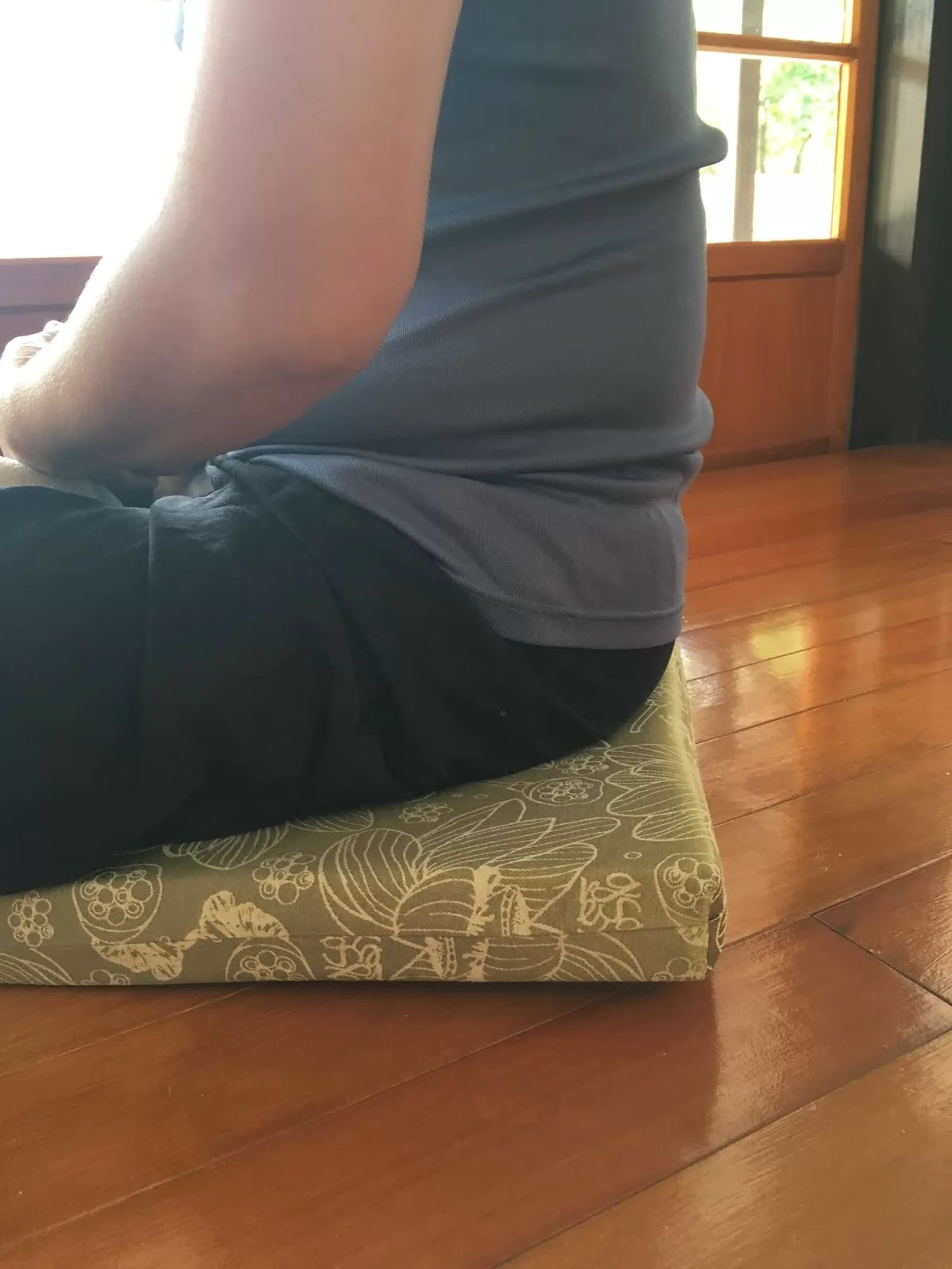 小坐墊自然托高臀部,讓脊椎保持輕鬆正直的狀態,這種身體自然放鬆的感覺,讓我覺得也很適合作催眠和冥想。