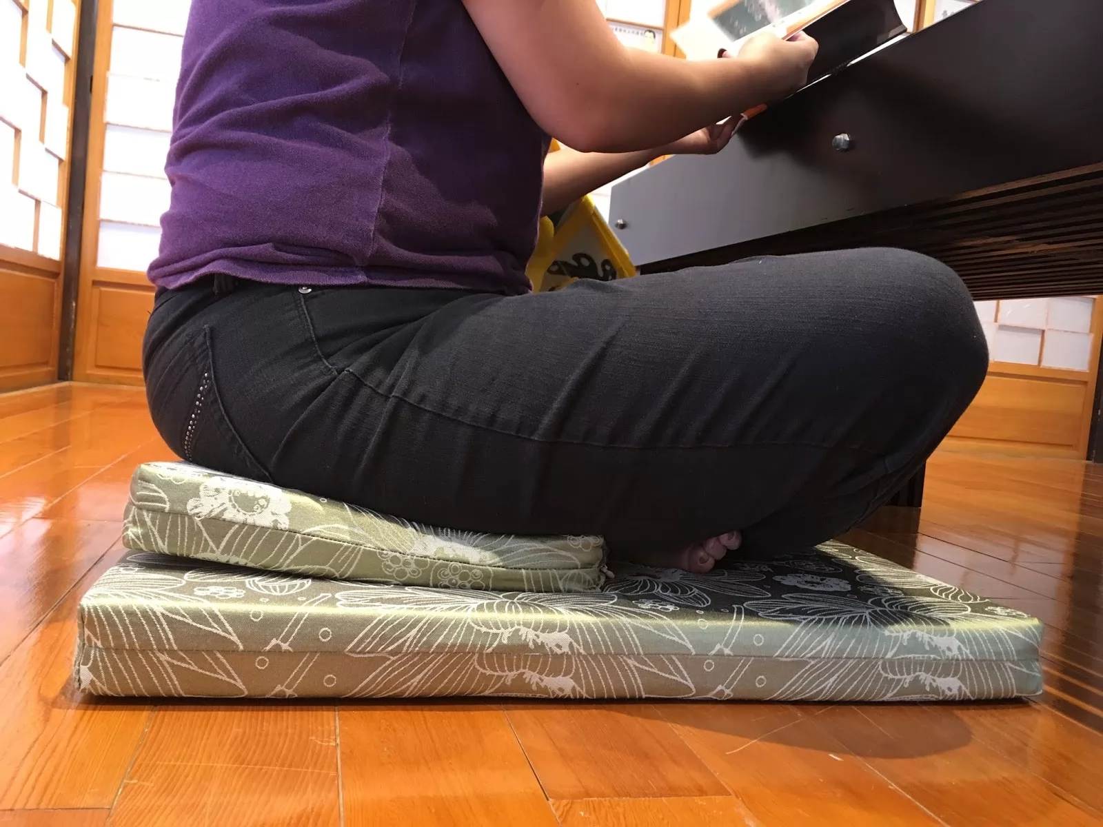 將小坐墊放在大坐墊的側邊上,就已組合完成,可以準備靜坐了。