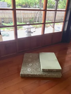 我們帶著「GreySa格蕾莎」的「蓮花靜修坐墊組」到「總爺藝文中心」的招待所,這裡的和室木地板相當適合體驗靜坐。