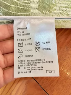 坐墊側邊有洗滌說明標籤,建議以40度C以下的水溫和洗滌,可以乾洗和低溫熨燙,但不能漂白和烘乾,避免坐墊變形。