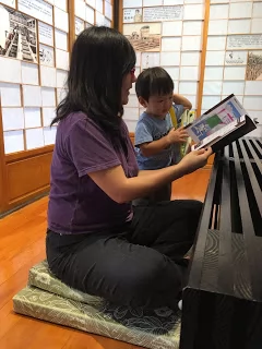 小福寶很認真地觀察爸爸的姿勢,試著想盤腿和雙手交疊,好可愛呀。平常好動的他,他竟然可以學爸爸坐在坐墊上許久,看來身教好重要。
