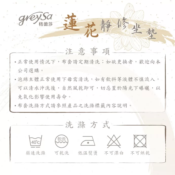 GreySa格蕾莎蓮花靜修坐墊組注意事項: