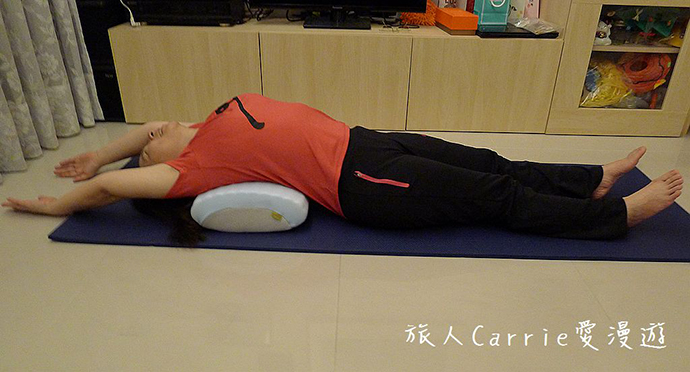 而墊在腰部則可以擴展胸腔,讓身體整個放鬆,