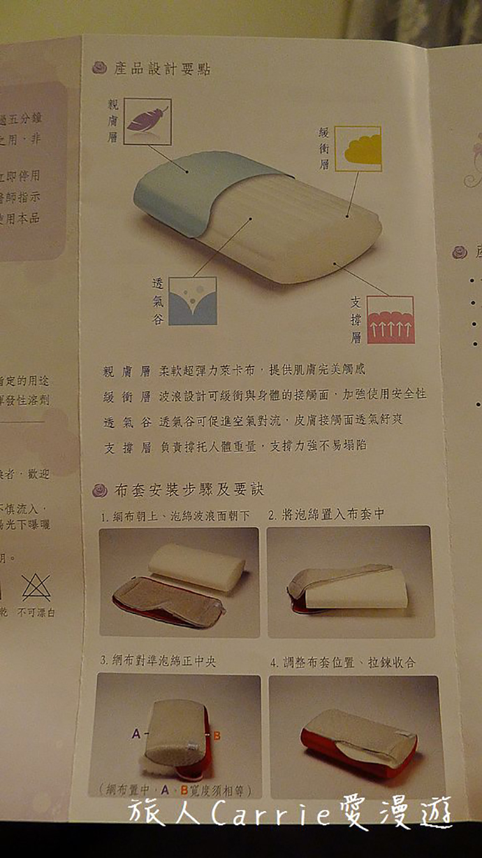 枕頭包裝內會附有商品的DM,裡面會有布套安裝的教學,