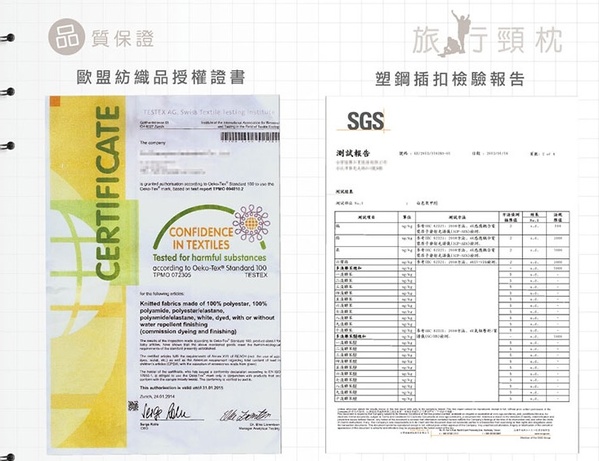 歐盟紡織授權證書與塑鋼插扣測試檢驗報告,加倍安心使用。