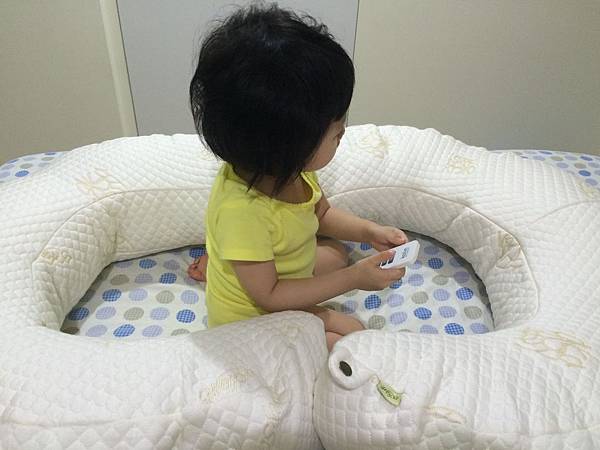 像是小baby剛開始學坐輔助,靠著就不用怕東倒西歪會撞到。
