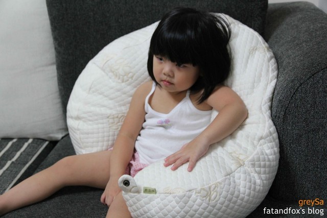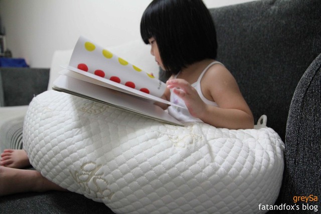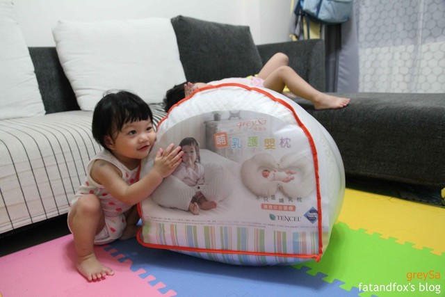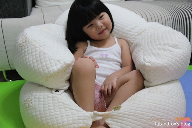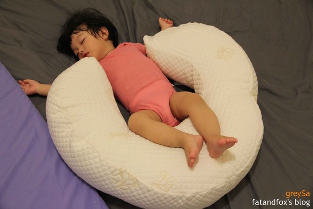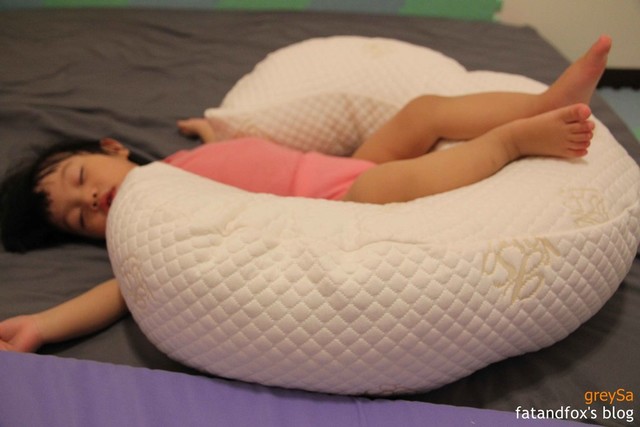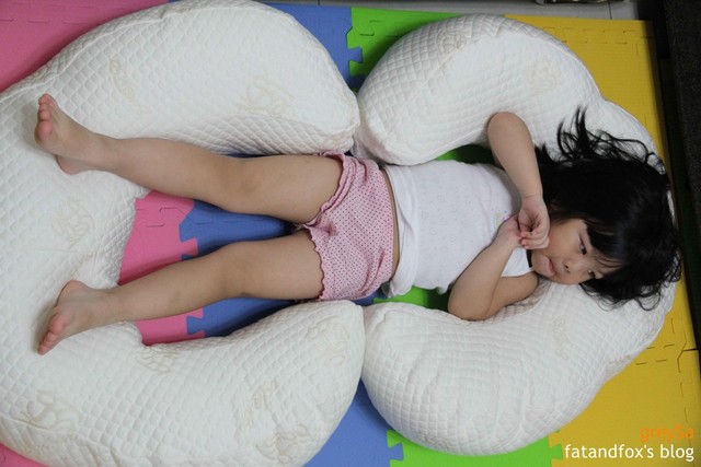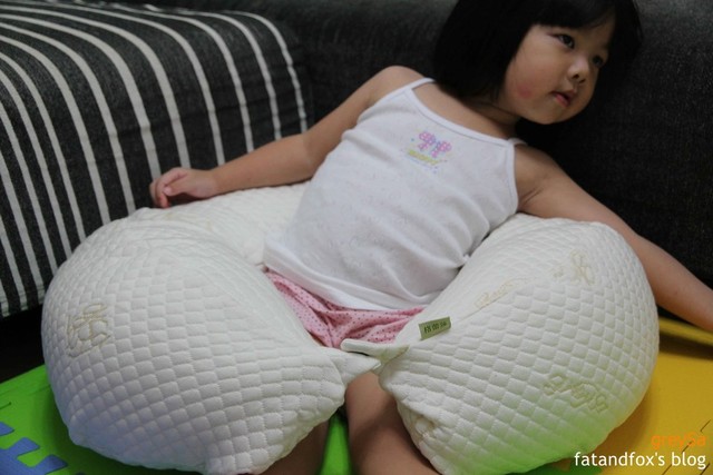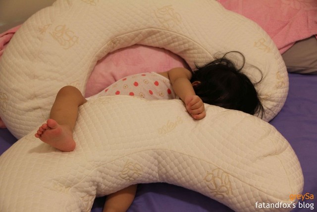 另外我還滿常把哺乳枕拿來當防護的,像芃芃還小,為了怕她翻下床,把它擺成U字型就可以三面保護,而且GreySa格蕾莎 哺乳護嬰枕夠高,也比較不易「翻牆」。