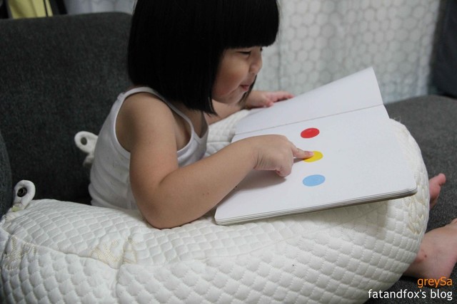 我記得饅頭剛學坐的時候,也常像這樣子坐在哺乳枕裡面,就比較不怕學坐還不穩的她受傷,其實她現在還是很喜歡這樣子坐,安全感從那時就開始記憶到現在了。