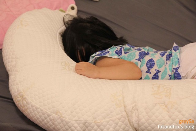 因為現在姊妹都睡一起,為了怕她們睡相不好互相干擾,我還是會習慣性像這樣把哺乳枕放在她們兩個中間當楚河漢界,確保睡眠品質。