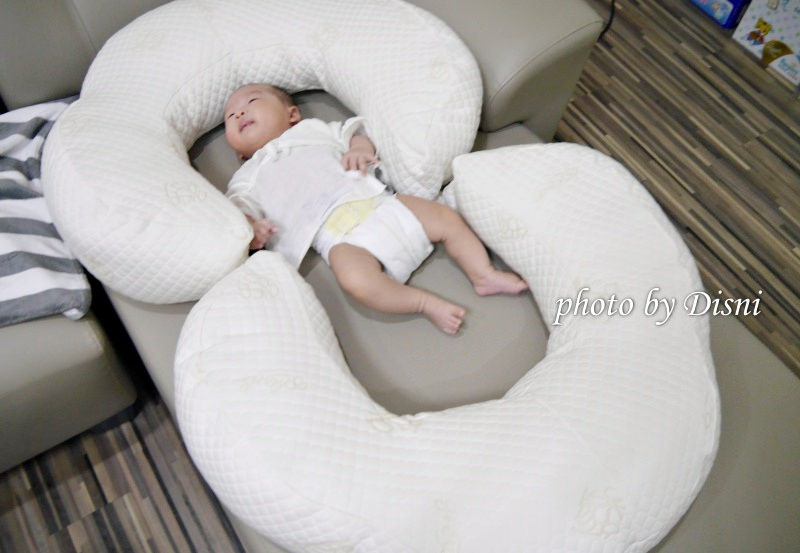 我通常不會放豆豆一個人,但假如不得已,我一定會用護嬰枕把他圈住~