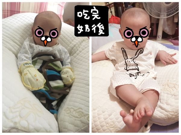 我也會讓他靠在這顆枕頭上吃奶,一直到現在每天晚上睡前都是放上枕頭就是要吃奶了。
