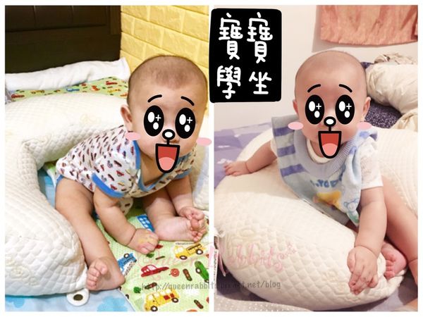 剛開始讓他練習坐的時候,我會用這顆枕頭圍在他旁邊以防止他突然重心不穩往後仰~