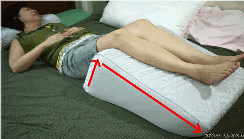 抬腿枕就會用來支撐兩腳膝蓋使膝蓋不會因交疊產生壓力及痠痛感。