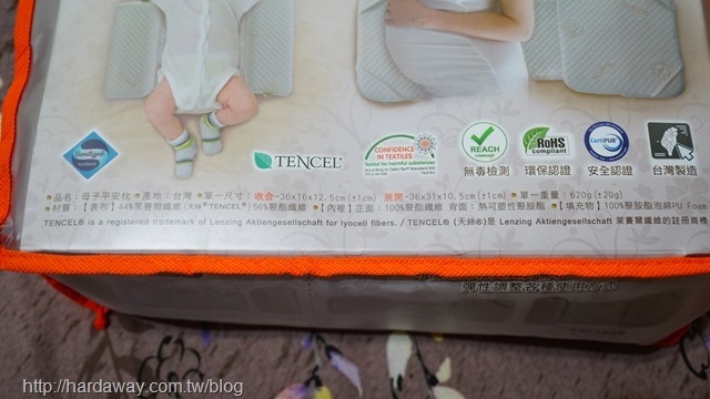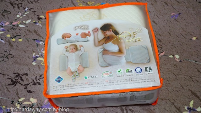 台灣本地製造的格蕾莎母子平安孕婦枕,使用了瑞士第一品牌Sanitized防菌技術,而布套部分,則使用了TENCEL天絲纖維材質,讓孕婦或小寶寶使用時能更舒適,也會相對安心。
