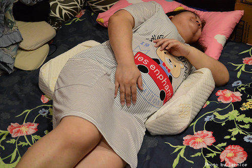 此時格蕾莎的母子平安枕(孕婦枕)就派上用場囉,托腹一把罩,睡眠更舒適
