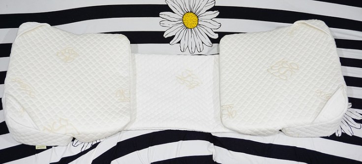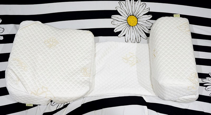 包含兩個長方形枕頭以及一塊附有黏扣布的長型布條