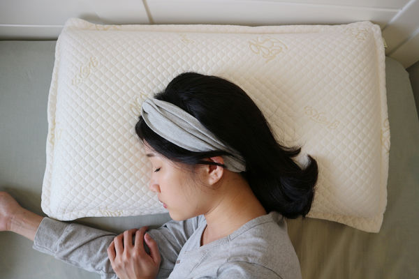 熟眠記型枕溫柔的支撐貼合頸部,頭部被柔軟的包覆著