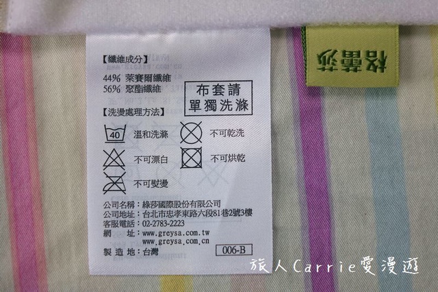提繩上有2張小吊卡,說明了枕頭套的材質,