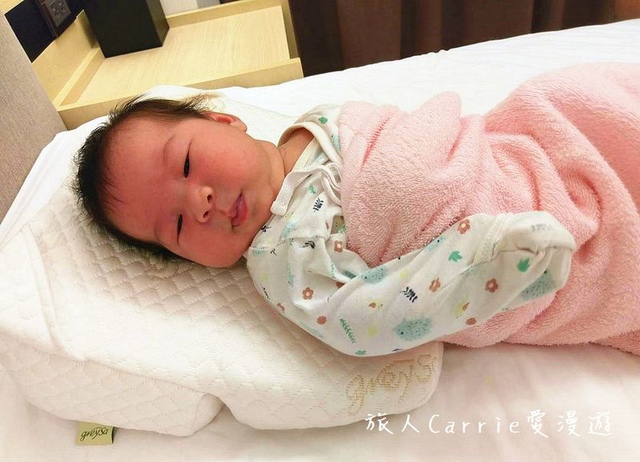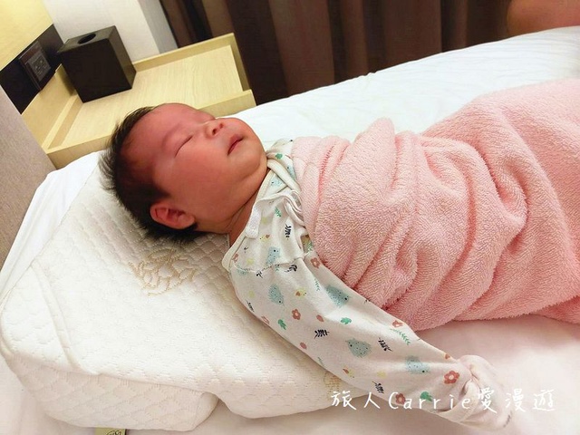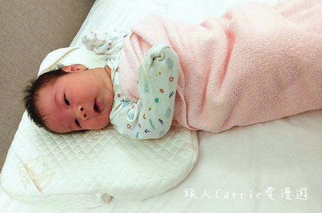 微微傾斜的枕頭,能夠防溢奶、防吐奶,