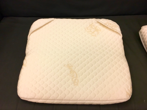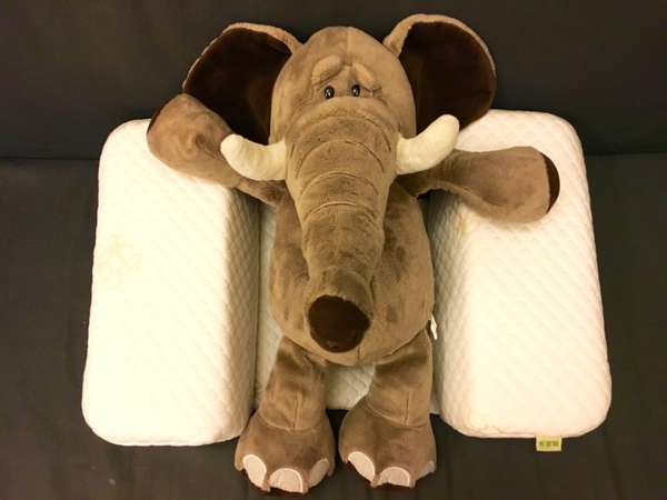 有兩個長方形枕頭+一塊兩端有黏扣布的布,是一款可以隨自己體型調整的枕頭喔!