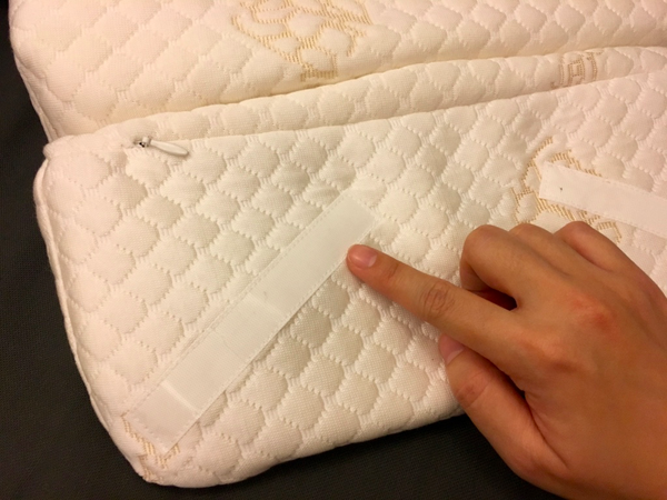 將兩顆長方形枕頭展開-透過魔鬼氈將黏扣布固定-完成!