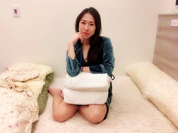避免霸佔老公太多位置,所以用的長度大約一個枕頭寬~(貼心老婆來著)