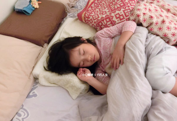 實躺結果揭曉!自從換了這顆枕頭,說也奇怪~小Q妹她幾乎不再床上流浪了耶,每天早上醒來時就安安穩穩地躺在這顆枕頭上,看起來就是正好眠呀!至於她是仰睡+側睡的綜合睡姿,到底該睡枕頭高的還是矮的哪一邊呢?,小Q妹頭一晚是先睡矮的、第二晚再睡高的,第三晚她告訴我、她比較喜歡高的那邊,哈哈~所以如果也是綜合睡姿的孩子,答案就是靠自己的感覺去選擇嚕!謝謝GreySa格蕾莎無毒環保記憶枕,我想我找到最適合的枕頭了!