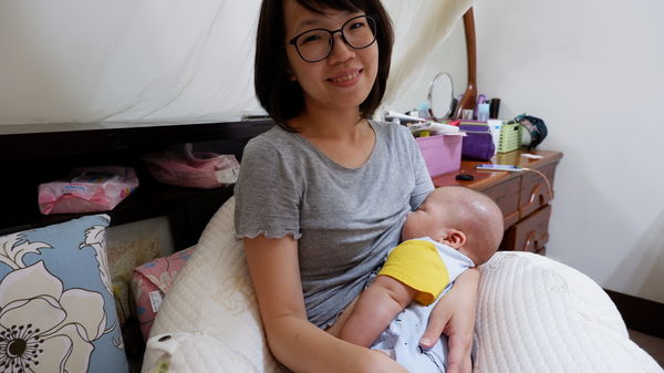 你看看~這樣阿木我就能很輕鬆的餵奶,小王子也一副很享受滿足的樣子~~